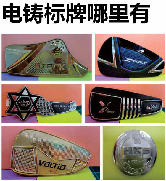 電鑄標(biāo)牌是采用電化學(xué)的方法,在制有掩膜圖文的導(dǎo)體胎膜上快速 沉積金屬,構(gòu)成金屬的圖文薄片,將金屬薄片從胎膜上分離后,覆以不 干膠作為黏結(jié)層,即制成電鑄標(biāo)牌。電鑄標(biāo)配廣泛應(yīng)用于適用于各種家用電器,電腦顯示器,鼠標(biāo),音響,家具,防盜門,玻璃制品,手機塑料殼,手機PU套,不銹鋼杯,皮帶口,手機,摩托車,禮品盒,鐵件,鋼琴,吉他,酒盒等工藝品上。